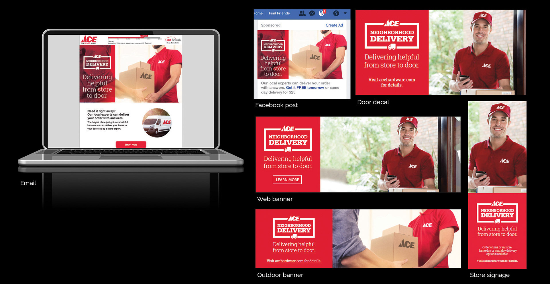 Multi-channel campaign to promote Ace's new delivery service, covering print and digital channels. Creative direction